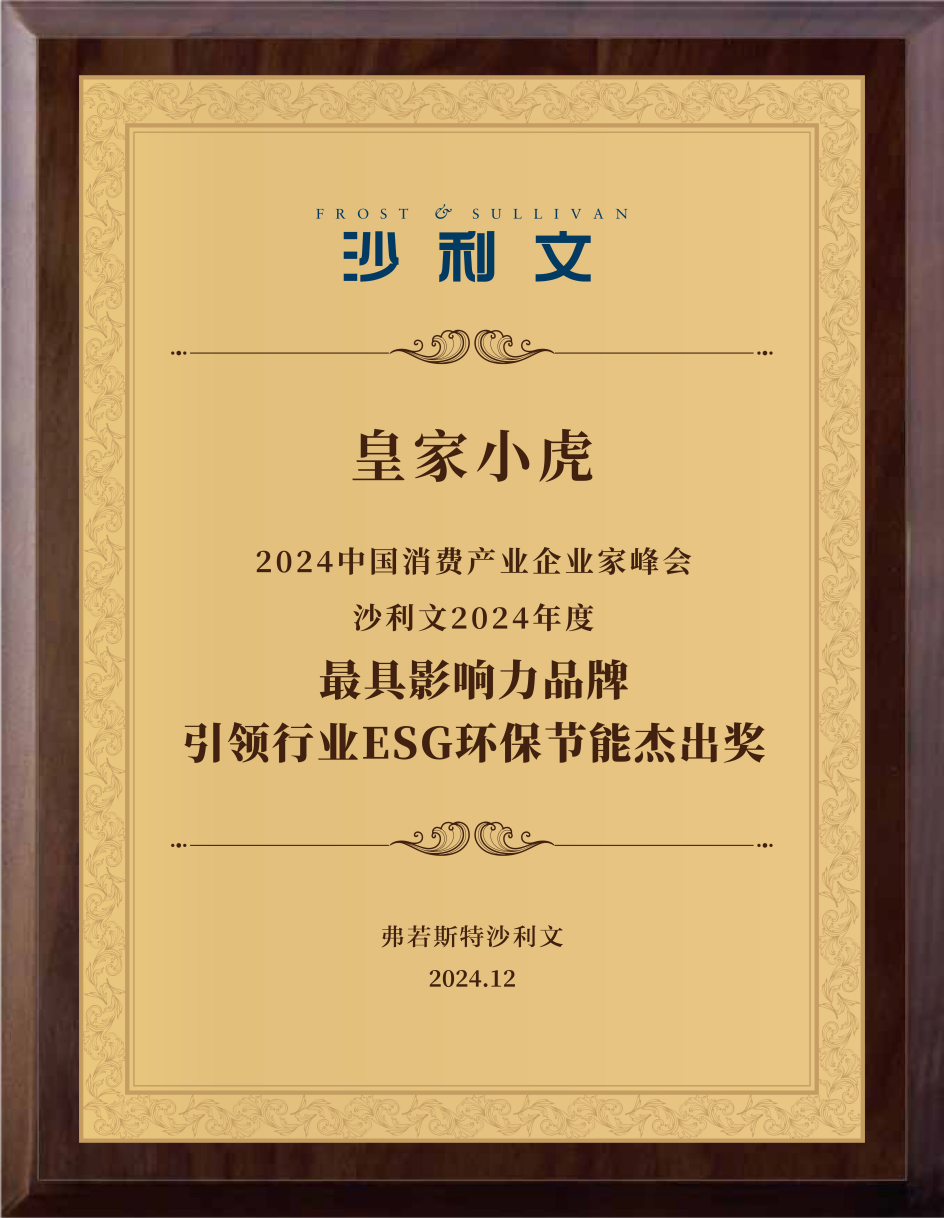 本次獎(jiǎng)項(xiàng)并不是皇家小虎在ESG治理領(lǐng)域首次斬獲大獎(jiǎng),在2024年12月,皇家小虎榮獲沙利文頒發(fā)的“最具影響力品牌-引領(lǐng)行業(yè)ESG環(huán)保節(jié)能杰出獎(jiǎng)”;2025年3月,皇家小虎在福布斯中國(guó)大消費(fèi)系列評(píng)選中榮獲2025大消費(fèi)年度ESG先鋒企業(yè)。這些行業(yè)機(jī)構(gòu)的獎(jiǎng)項(xiàng),從更加社會(huì)與公眾的企業(yè)ESG實(shí)踐角度,全面地評(píng)價(jià)了一家公司在經(jīng)營(yíng)業(yè)務(wù)之外,對(duì)應(yīng)該承擔(dān)的社會(huì)責(zé)任與環(huán)保責(zé)任的履責(zé)表現(xiàn)。行業(yè)機(jī)構(gòu)及合作伙伴的對(duì)于皇家小虎的多次ESG表彰與獎(jiǎng)項(xiàng),是對(duì)皇家小虎在工廠生產(chǎn)、配送履約等各個(gè)環(huán)節(jié)在ESG方面持續(xù)實(shí)踐的認(rèn)可與贊賞。
